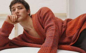 The insulated jacket is made of leather. A light layer of insulation. Details: stand-up collar, zipper, two pockets on the sides.